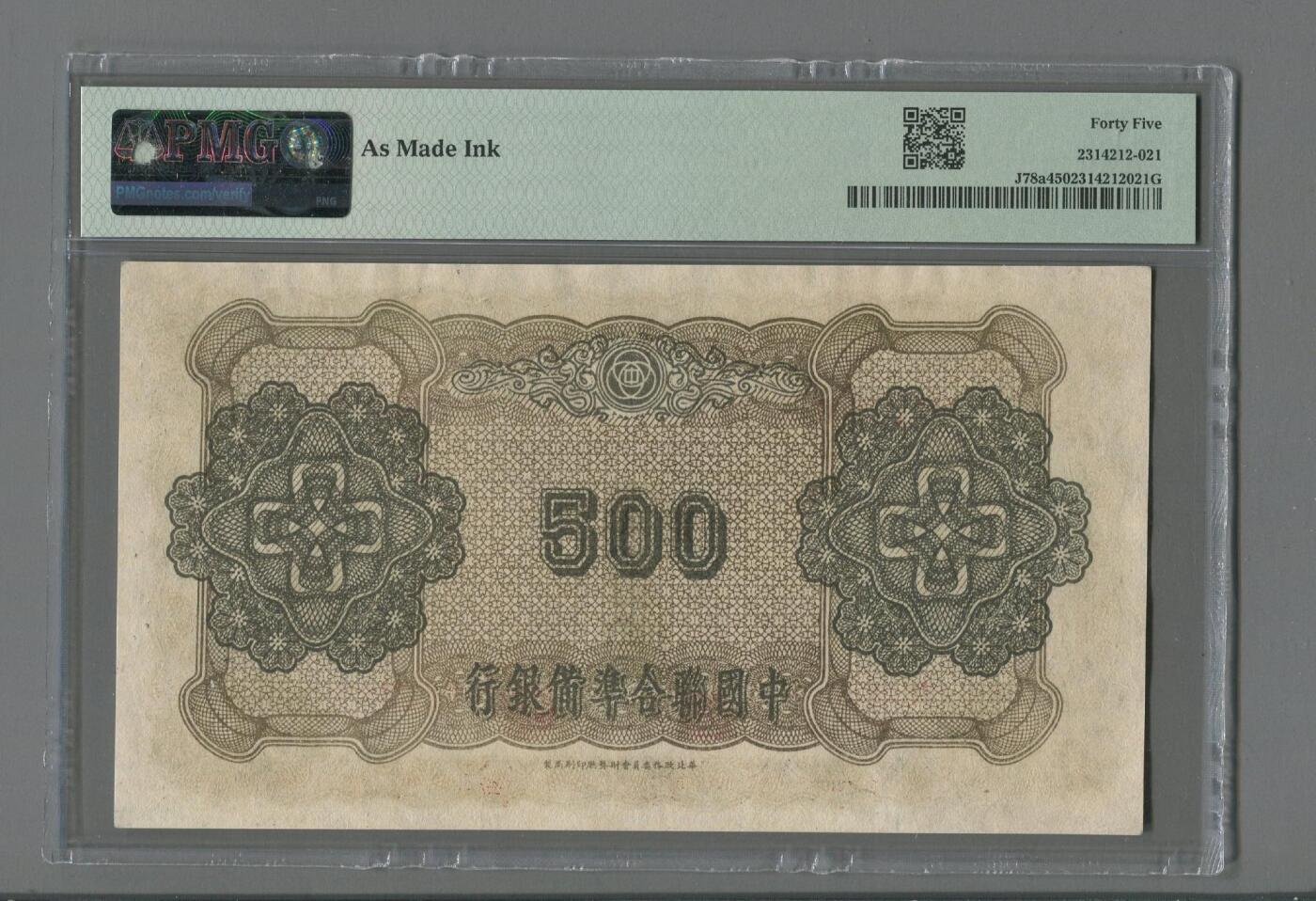 | メーカー | 中国聯合準備銀行 伍百圓 |