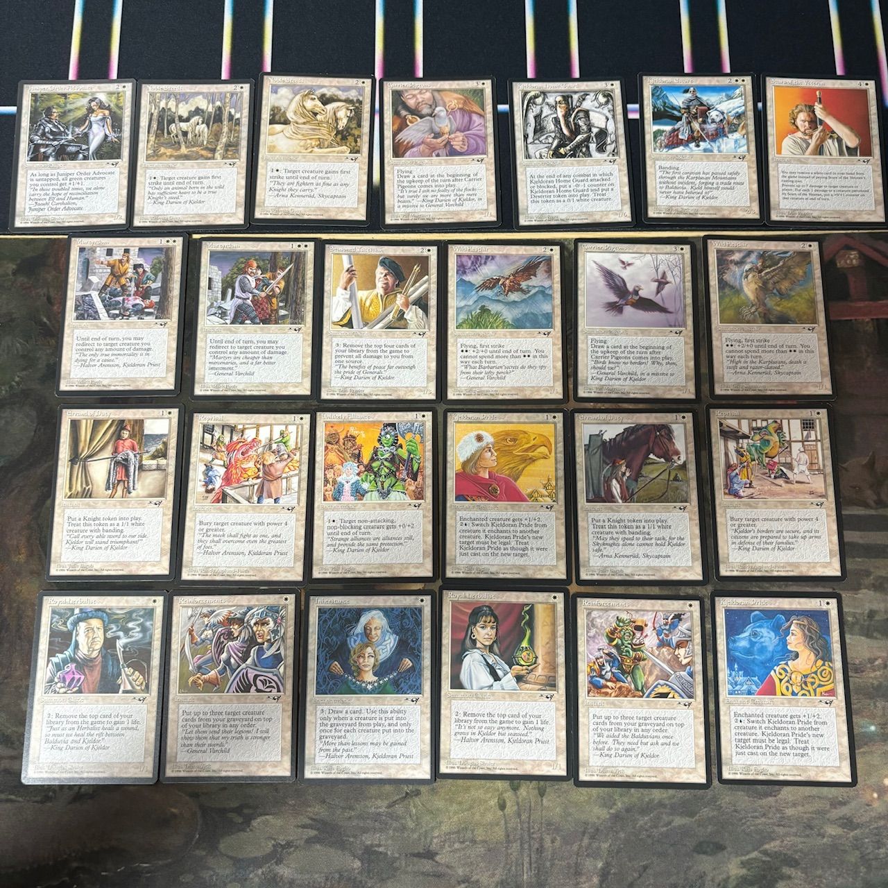 | 商品の特徴 | MTG アライアンス絵違い込みコンプリートセット英ALL。MTG アライアンス絵違い込みコンプリートセット英ALL。MTG アライアンス絵違い込みコンプリートセット英ALL。MTG アライアンス絵違い込みコンプリートセット英ALL。ご覧頂きありがとうございますアライアンスの英語版、144種類絵違い込み199枚のフルコンプリートセットになります有名どころしてはForce of Will、Lake of the Dead、Helm of Obedience、Kjeldoran Outpost、Thawing Glaciers、Elvish Spirit Guideなどがあります再録禁止カードも多数収録されております状態につきましては様々になってしまうので傷や汚れありとさせて戴きますが折れや破れ、水濡れと言った致命的なダメージはございません高額カードに関しては重さ、ライトチェック等本物である事を確認してありますかなり昔に購入した品になりますが何枚かは自分で剥いたニアミントのカードと差し替えたり、都度入手する度に状態の良いものをこのセットに残すようにしてきました意志の力はこの1枚含めて5枚のアライアンス版を所有していましたのでその中で一番良いものに替えてあります自引きして差し替えた中で間違いないのはContagion、Krovikan Horror、Tidal Control、Rogue Skycaptain、Gustha's Scepter、Soldevi ExcavationsになりますこれらのカードはPSA等の鑑定にかければ高確率で高評価が取れると思います額が額なので近場であれば直接手に取って確認してもらってからの購入でも構いません、当方栃木県宇都宮市近辺に住んでおります画像が載せきれないので別に画像確認用の出品をするつもりですが必要な写真がありましたらコメントいただければ追加撮影可能ですその他気になる点がございましたらお気軽にコメントしていただければ対応できます発送は佐川急便/日本郵便の宅急便を予定しておりますが希望があれば変更致しますライトチェックの画像は別出品の方に後ほど追加します#むっくMTG↑からMTGの出品物一覧が表示できます商品検索と同様にソート等の機能を使うことができますのでまとめ買い等にご活用下さい#マジックザギャザリング #EDH #統率者 #レガシー #モダン #pauper #初版 #引退 #処分 #大量出品 #まとめ #MTG #フルコンプリート | ||