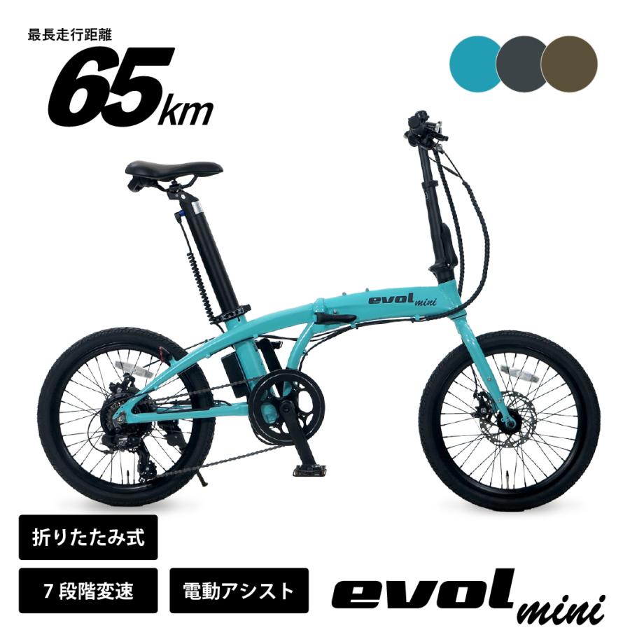 - 自転車 > 自転車本体 > evol mini 折りたたみ 電動アシスト自転車 ブルーグレー 日本メーカー 2025年モデル 20インチ 7段変速 カギ ライト コンパクト 折りたたみ