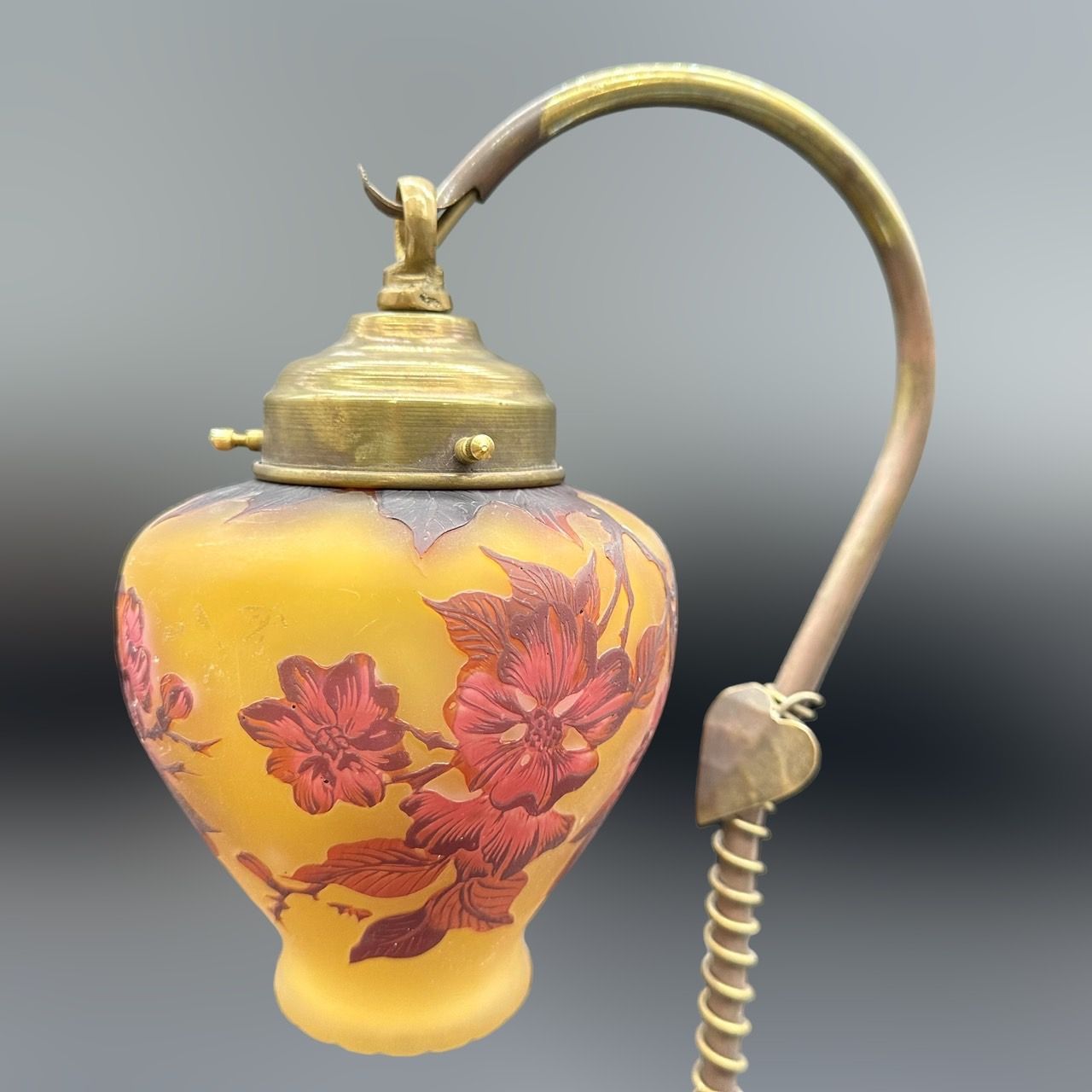 - 美術品・アンティーク・コレクション > 工芸品 > エミールガレ 一灯吊りランプ 林檎紋 カメオ彫り 被せガラス 高さ39cm エミールガレ 一灯吊りランプ 林檎紋 カメオ彫り 被せガラス 高さ