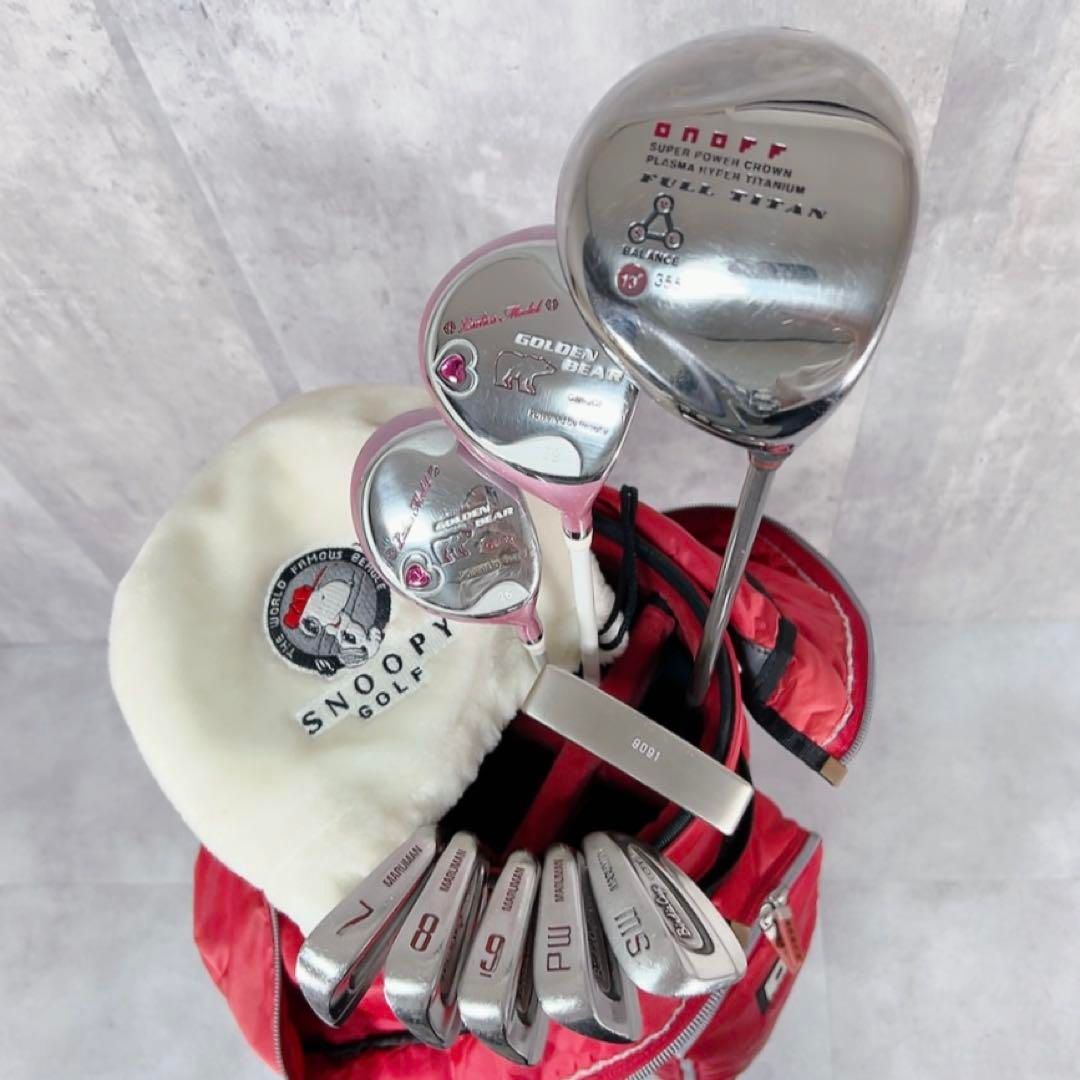 | 商品の特徴 | X432 オノフ 他 レディース ゴルフ クラブ セット ゴールデンベア。レディースゴルフクラブセット小物付きお取引き中。ゴルフクラブ レディースセット 初心者 ゴールデンベアー GBH NT1138。★【商品】レディース ゴルフ クラブ セット 10点オノフ ゴールデンベア マルマンONOFF GoldenBear marumanユーティリティ キャディバッグ【セット内容】・ドライバー/ウッド2本(1W・4W)・ユーティリティ 26°・アイアン/ウェッジ 5本(7・8・9・PW・SW) ・パター(メーカー:mizuno)・利き手:右・FLEX:L【付属品】・キャディバッグ (メーカー:ONOFF)・スヌーピー マルチポーチ--*--*--*--*--*--*--*--*--ご覧頂きありがとう御座います。事前にプロフの確認もお願い致します。ユーティリティも付属しておりますので、初心者の方でもすぐに練習場やゴルフコースでご利用頂ける商品です。この機会に是非お買い求め下さい。全体的に使用による擦れや傷、汚れ等ありますが、まだまだご利用頂ける商品となります。※色味、外装など商品の評価は主観的な内容となります。弊社女性スタッフにより丁寧に清掃しております。シビアなコンディション、状態等、完璧を求められる方はご入札をご遠慮下さい。状態、付属品等、現物優先となります。購入後の返品、クレームについてルールに則り対応させて頂きますので中古品である事をご理解の上ご購入下さい。こちらの商品は1点ものになります。専門的なご質問、及び商品説明欄に記載していない型式、型番、年式などは、当方では分かりかねます。また、譲り受けた物の為、購入時期、使用頻度なども分かりかねますので、予めご了承下さい。【発送方法】ヤマト運輸、もしくは佐川急便にてお送り致します。配送業者の指定は致しかねますので、予めご了承ください。※沖縄、離島の方は別途送料がかかりますので、ご購入前にコメントください。>> #fantasyの出品ページはこちら0402309000001。Golden Bear(クラブ)のフリマアイテム一覧。TaylorMade Qi10 MAX ドライバー 9.0。PING G430MAX 10K ドライバー 10.5° ヘッドのみ。Callaway Solaire ゴルフクラブセット(キャロウェイ ソレイル)。【中古】P-tune PG101 アイアンセット〈Dynamic Gold85〉。【美品】PING G440 UT4 23° TOUR 2.0 BLACK 90S。オデッセイ Ai-ONE スクエア2 パター。TSR2 フェアウェイウッド 3番 ロフト角15度。24ベンタス レッド 5S ピン ドライバー用。【希少】Titleist VOKEY SM9ノーメッキrow wedge x 2。ODYSSEY Ai-ONE スクエア2ジェイルバード 34インチ未使用パター。ダンロップ ゼクシオ FORGED(2017) アイアン。TaylorMade ミニドライバー 希少tour ad vf 6S。Callaway ソレイユ レディース クラブセット。APEX UW ユーティリティ 19度 ベンタス tr blue 7s。【お得】ゴルフクラブセット ゼクシオ YAMAHA | ||